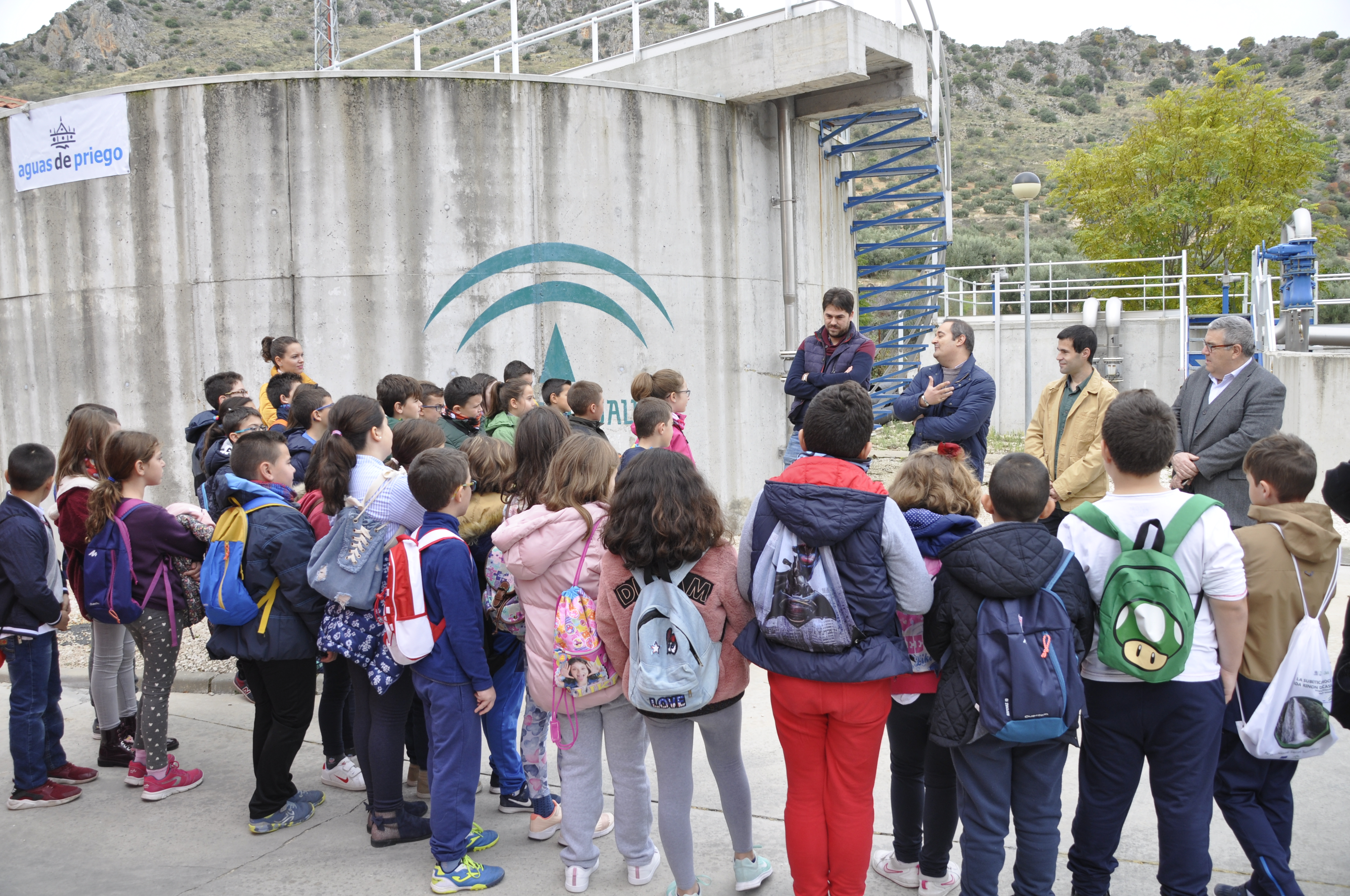 Juan David Anaya, Adrián de Amo y Juan Guijo, como responsables de la EDAR y del Servicio Municipal de Aguas, han estado acompañados de David López, concejal de Medio Ambiente, y Antonio Musachs, del área de Presidencia en el Ayuntamiento de Priego de Córdoba, para recibir y darles la bienvenida a todos los niños a la vez que les han recordado las buenas prácticas que deben de aprender e inculcar a sus amigos y familiares, como por ejemplo no arrojar toallitas y otros residuos al inodoro.