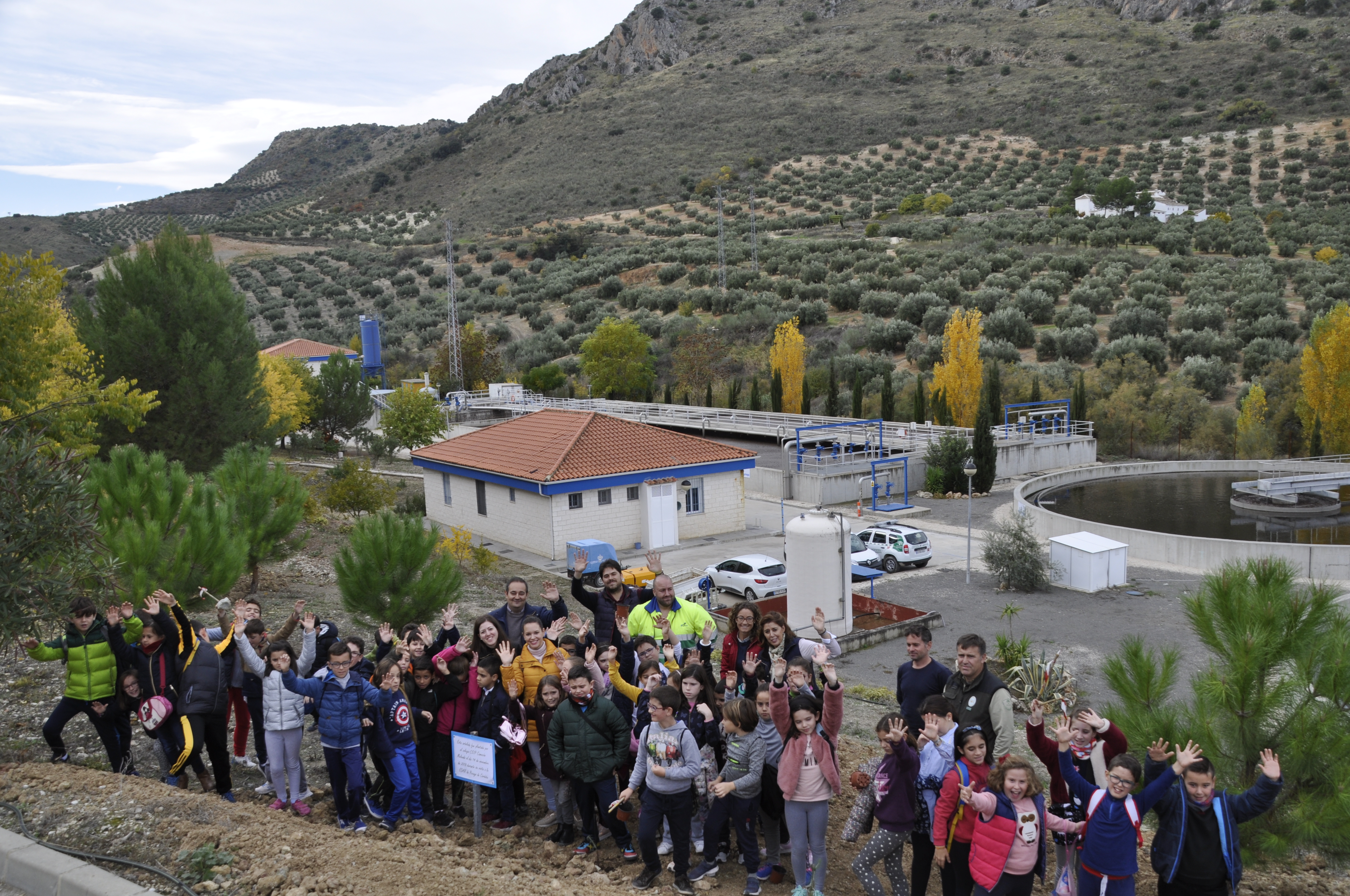 Finalmente, con ayuda del Agente de Medio Ambiente de la zona, que también ha estado presente durante la visita, se ha explicado a los alumnos la importancia fundamental que tienen los árboles y plantas para la vida, tras lo que los niños han procedido a plantar una arboleda en la EDAR junto a sus profesores.