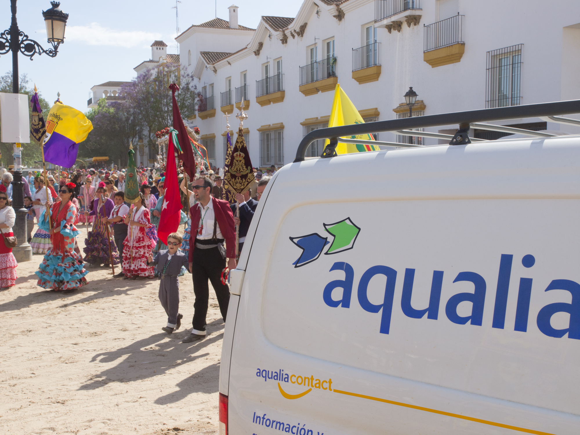 Aqualia informa a todos los peregrinos que estos días acuden a El Rocío que hay establecida una cobertura de servicio de 24 horas para poder dar respuesta a cualquier tipo de incidencia. Este dispositivo especial está formado por 26 personas, de las que 22 realizan turnos de 24 horas de 11 personas cada uno.