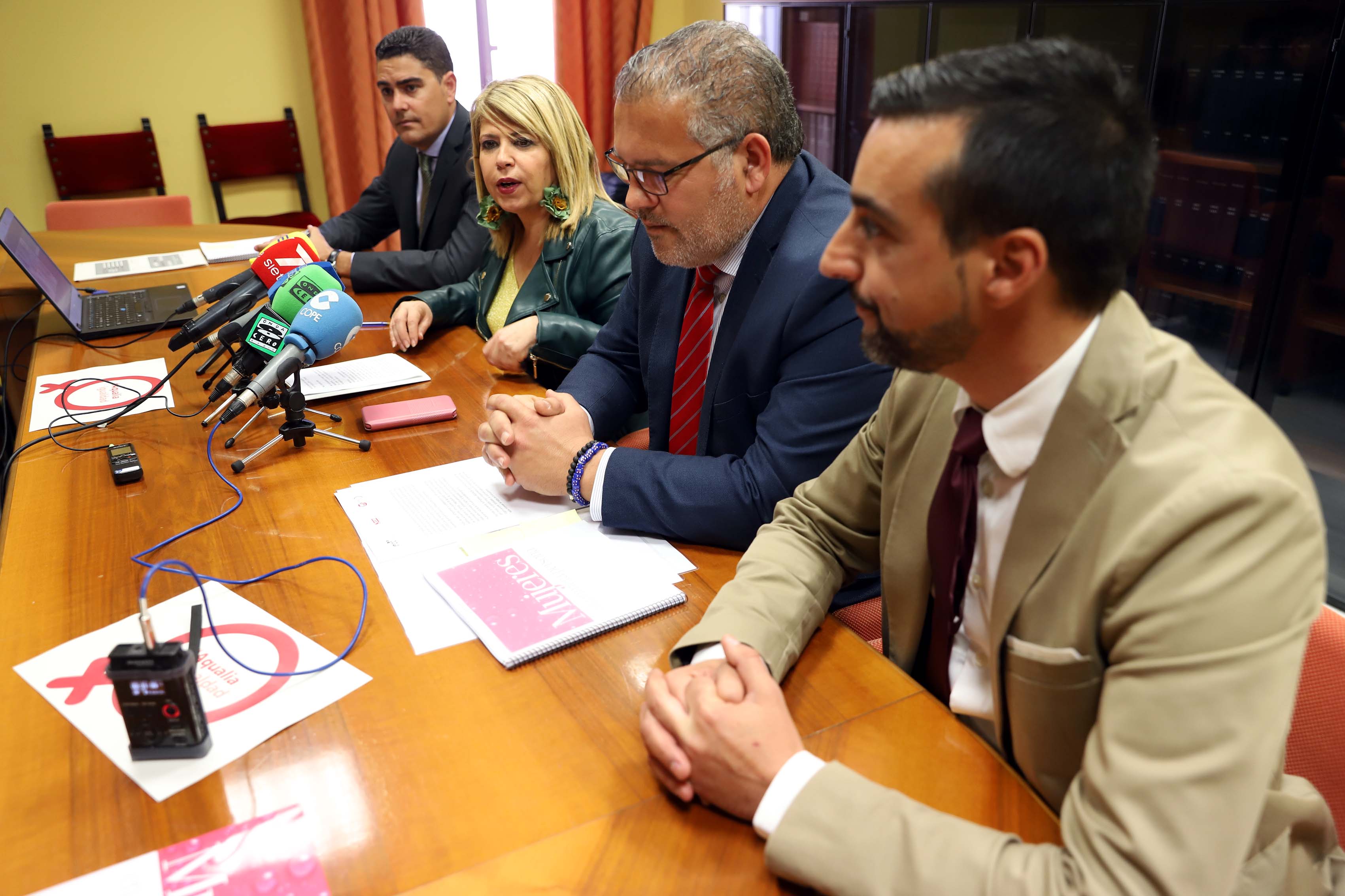 La alcaldesa de Jerez, Mamen Sánchez, junto al teniente de alcaldesa responsable de Sostenibilidad, José Antonio Díaz, ha presidido la presentación de esta campaña y del 6º Informe #EmpleoParaTodas, que la Fundación Adecco ha realizado con la colaboración de Aqualia, analizando la situación laboral de 13.000 mujeres en riesgo de exclusión social.