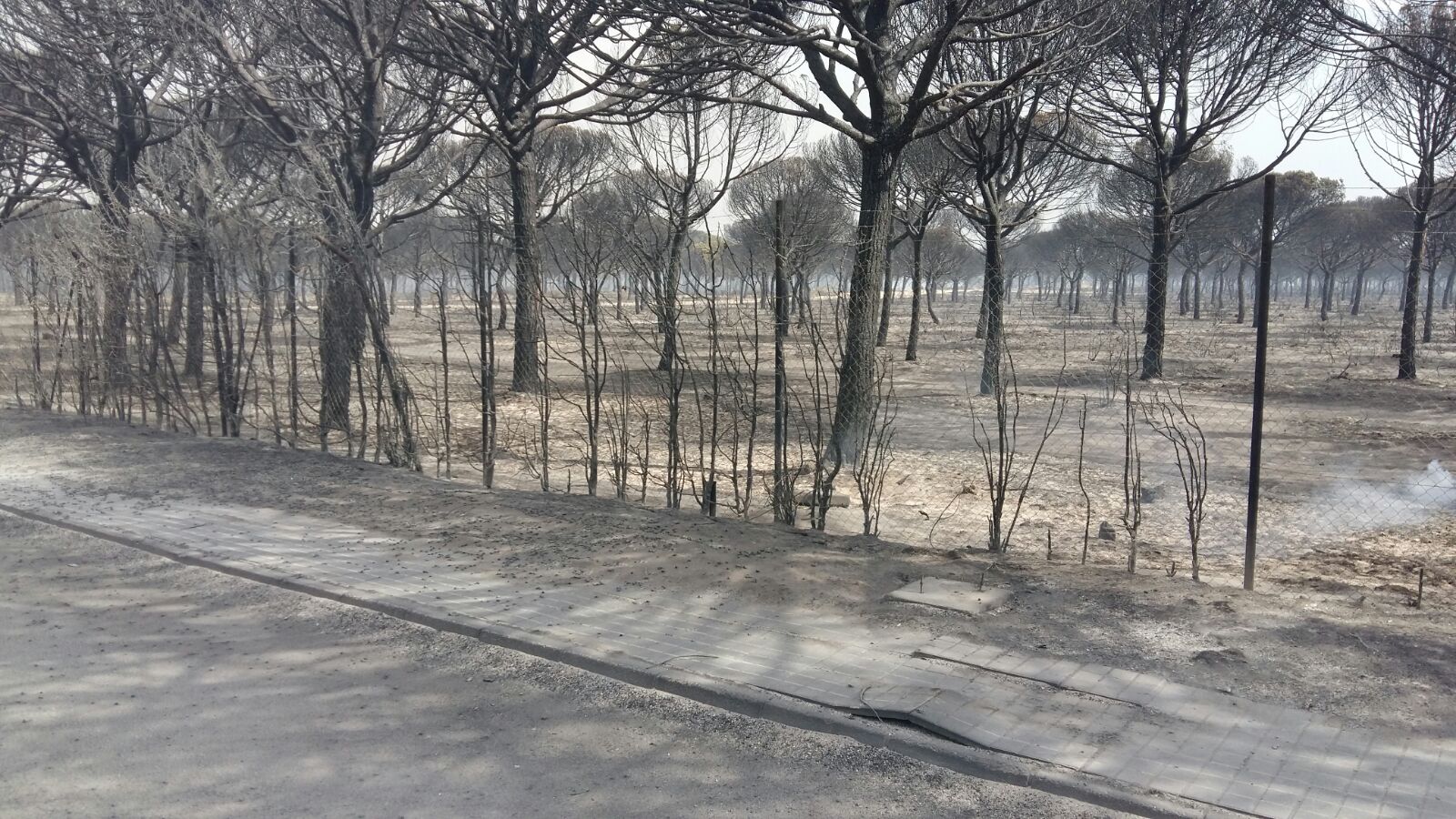 Pero la mayor parte de las infraestructuras hidráulicas han resultado afectadas por las llamas, como los citados pozos de captación de agua potable y la depuradora de aguas residuales de Mazagón, que se encuentra calcinada y ha sufrido graves daños. En esta instalación se ha conseguido poco a poco reanudar el servicio con grupos electrógenos y tubos para dosificar reactivos, pero de manera precaria.