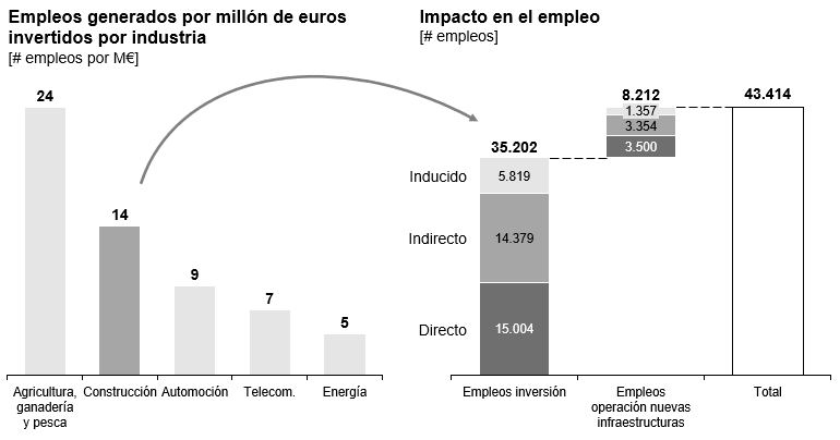 En el contexto actual, el impulso del sector del agua urbana tendría como resultado apoyar una recuperación económica del país más justa y sostenible, generando actividades de alto valor añadido, a la vez que se ayudaría a crear empleo de calidad. Se estima que estas inversiones contribuirían a la generación de más de 43.000 empleos a tiempo completo, que el sector podría movilizar con celeridad.