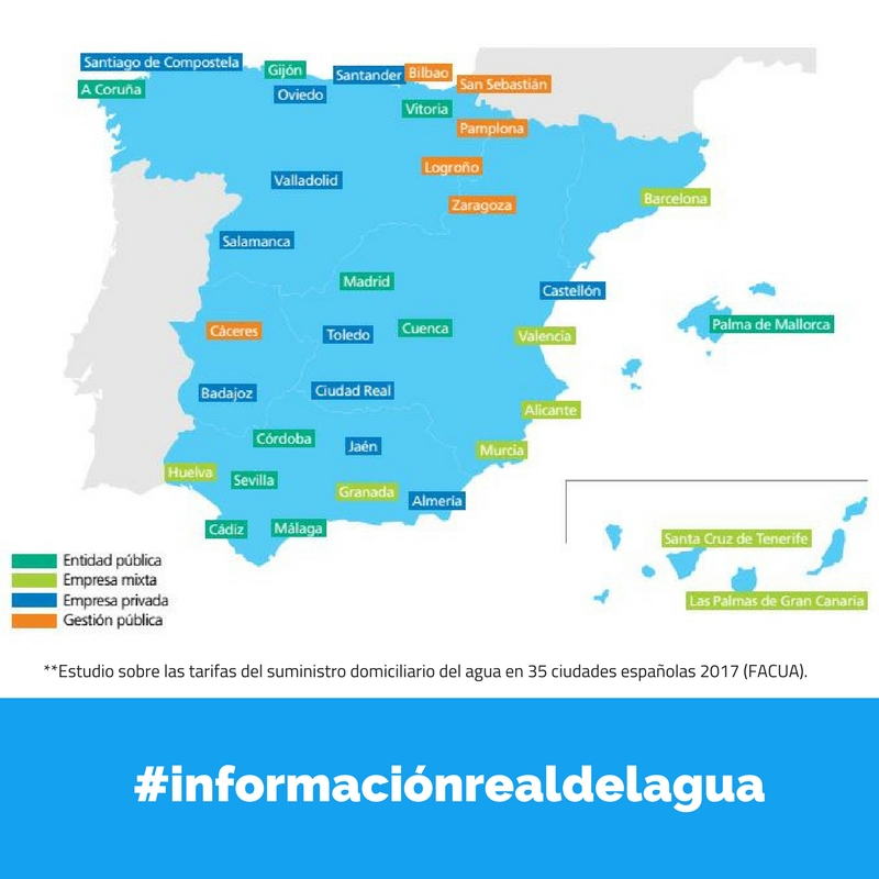 En España, la ley regula que la gestión del agua puede ser directa, indirecta o mixta, y que en cualquiera de los casos, la titularidad del servicio es siempre municipal. Por su parte, los distintos relatores de la Organización de las Naciones Unidas (ONU) han señalado que los gobiernos deben garantizar el derecho al agua y saneamiento, con independencia de quién preste el servicio y han reconocido que muchas personas no tendrían acceso al agua potable sin la participación privada.