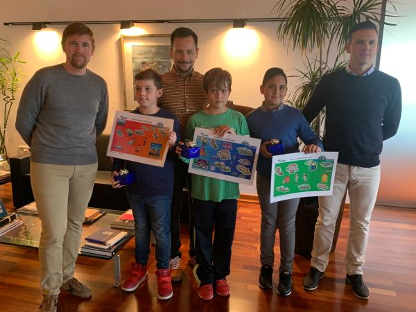 El alcalde de Ibiza, Rafa Ruiz, acompañado del regidor de Medio Ambiente, Jordi Salewski, y del responsable del Servicio Municipal de Aigües, David Bernaus, han entregado los premios a tres jóvenes alumnos que han resultado finalistas en la categoría individual de la 17.ª edición del Concurso Digital Infantil de Aquali...