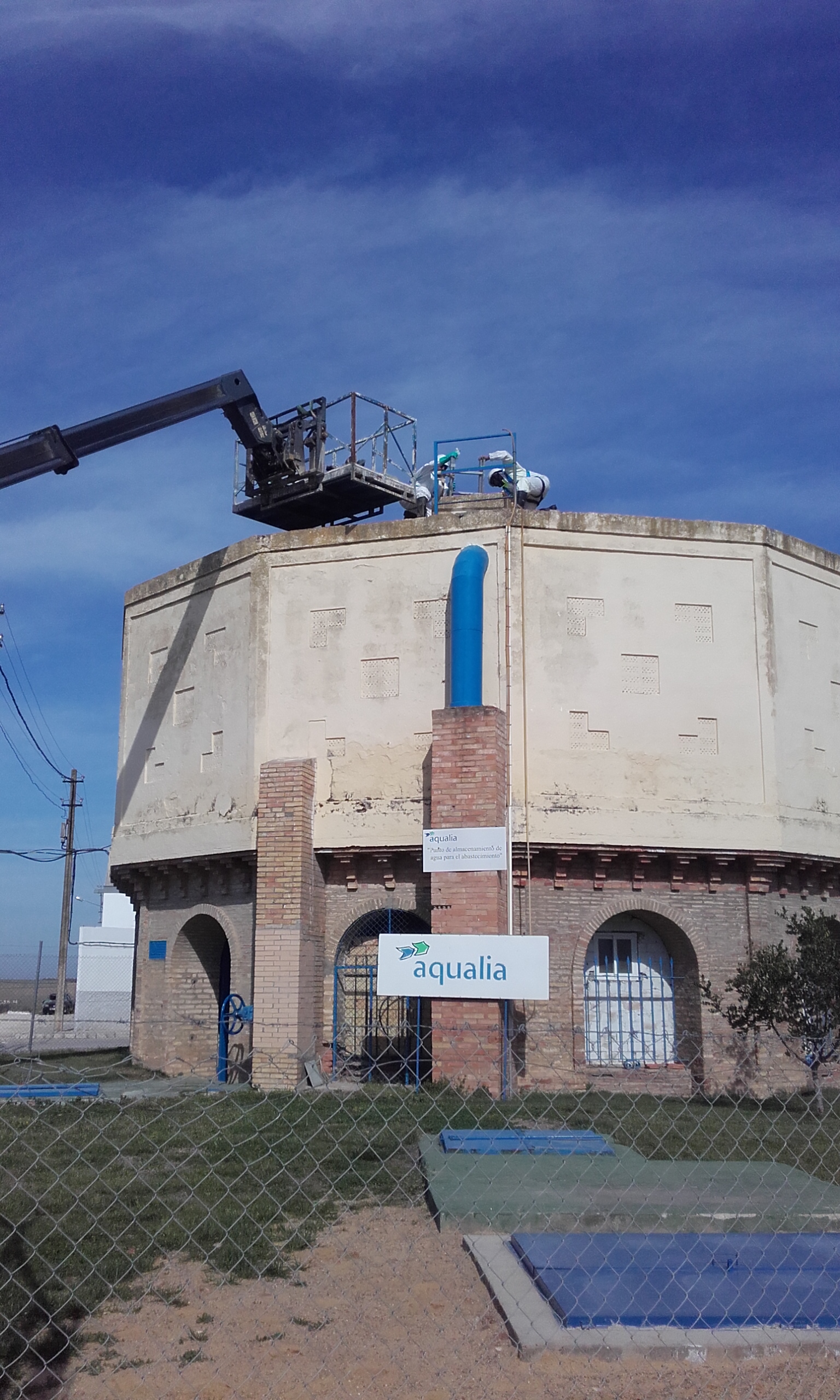 Aqualia, la empresa que gestiona el Servicio Municipal de Aguas de Fuentes de Andalucía, ha procedido hoy a la limpieza de uno de los depósitos del municipio, de 0’5 millones de litros de capacidad.