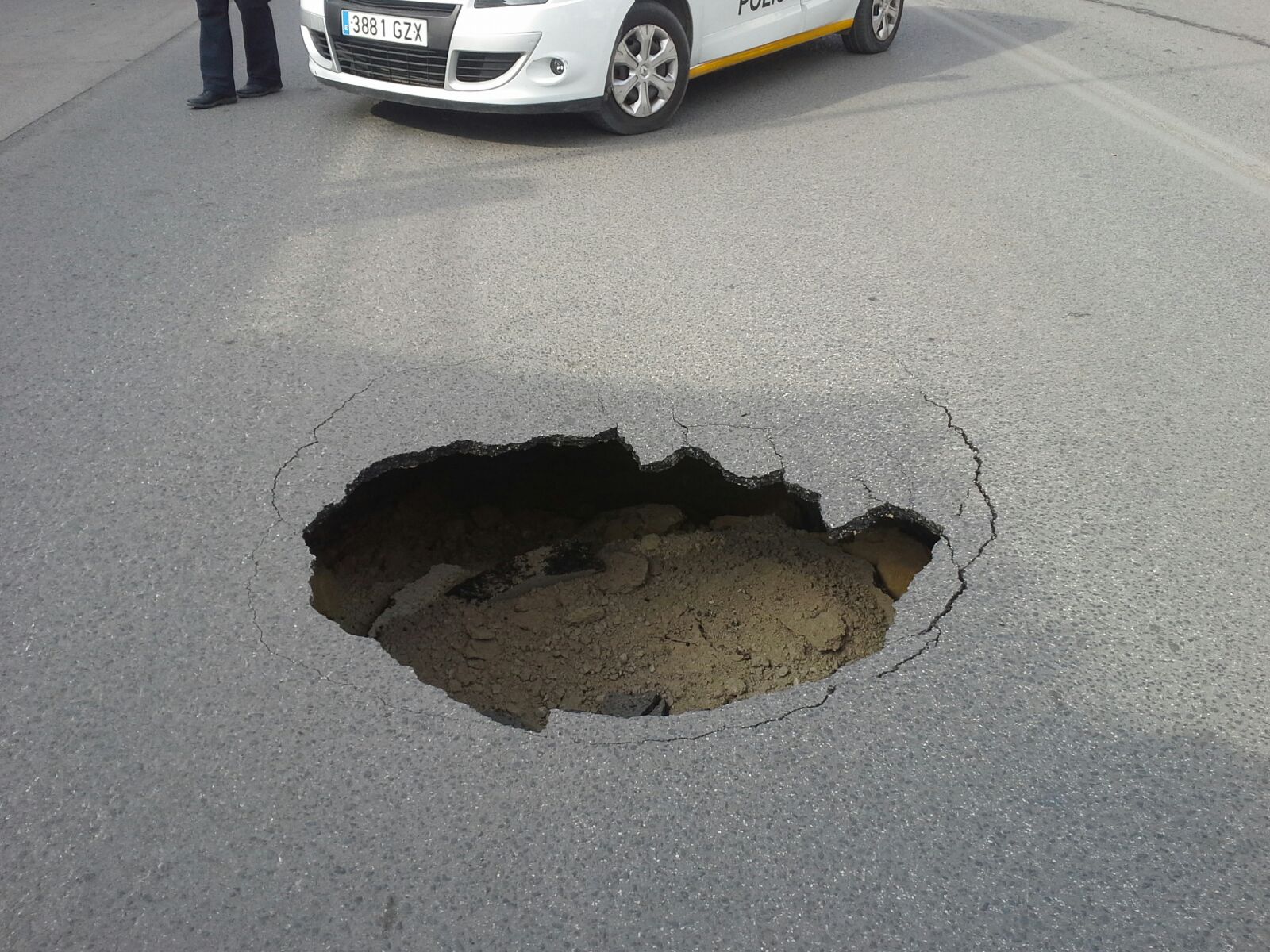 Aqualia trabaja para reparar un hundimiento de la calzada en Avenida de Las Piletas