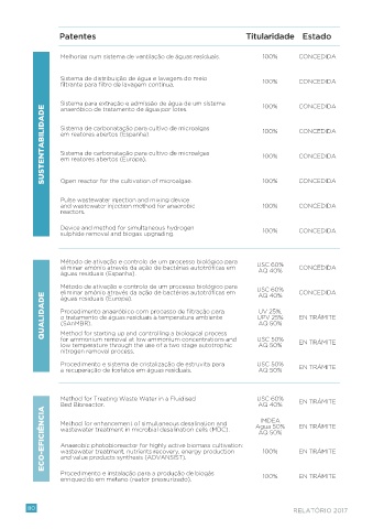 SUSTENTABILIDADE  Sistema de carbonatação para cultivo de microalgas  100%       CONCEDIDA